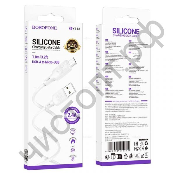 Кабель USB - микро USB Borofone BX113 1.0м 2.4A белый силикон